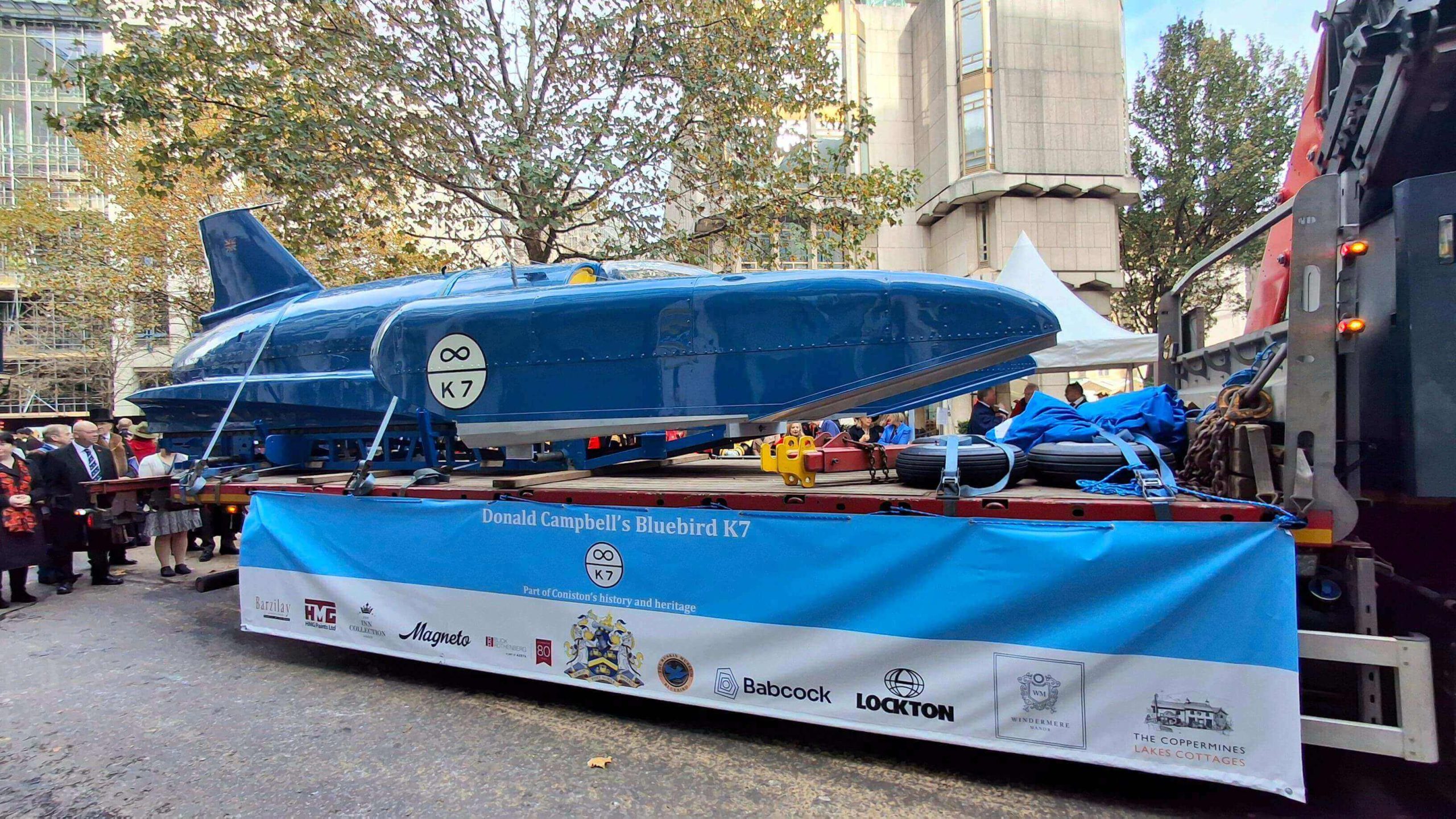 Bluebird K7 returning to the village of Coniston From North Shields, our Lorry Loader driven by Simon as we transported the famous Bluebird to its new home at the Bluebird Wing of The Ruskin Museum. There was plenty of supporters on the journey back to Coniston as Donald Campbell’s BluebirdK7 was warmly received by huge crowds on route and in Coniston and is now safely installed in the Ruskin Museum.
